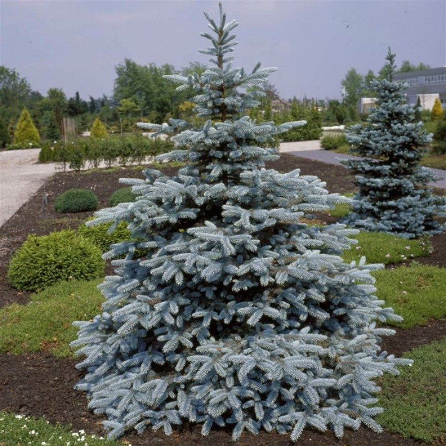 Ель колючая Omega - вечнозелёное хвойное дерево с правильной пирамидальной кроной, цилиндрическими коричневатыми шишечками и жесткой, прямой и зеленовато-голубоватой хвоей. За весь период своего развития ель данного типа способна вырастать до 140-160 см в высоту и до 3-5 м в ширину. В процессе роста это медленнорастущее древовидное растение образует своеобразные ярусы с густой хвоей.